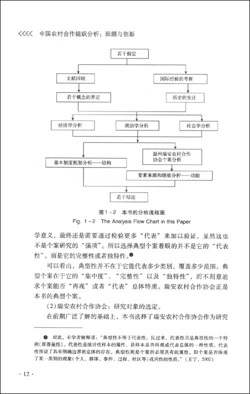 《中国农村合作组织分析:回顾与创新》分为八章。第一章引言。提出了本研究的三大前提假定,介绍《中国农村合作组织分析:回顾与创新》的背景、目的、意义、研究方法和分析框架。第二章通过农村合作组织的文献回顾,对农村合作组织的若干概念进行了界定。第三章对中外农村合作组织的历史变迁进行考察,总结其经验教训。第四章分别从经济学、政治学和社会学的角度对农村合作组织的作用和功能进行理论分析。第五章提出农村合作组织的基本制度框架,并论述其形成和变化的路径。第六章通过瑞安农村合作协会的个案研究,提出了一种农村合作组织的创新模式。第七章对农村合作组织的要素投入和绩效进行实证研究。第八章对全书进行总结,提出研究结论和有待进一步研究的问题。