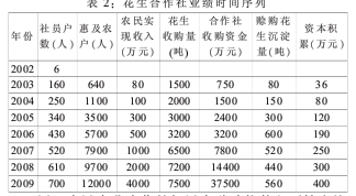 购买猪饲料、地膜、农药等农业生产资料提供优惠,并对其发放低于同期银行利率的贷款。另一方面,扶持当地一些花生个体收购加工户和小型加工、贸易企业以及农资超市、村门市部,为其提供流动资金(见表1)。目前,全镇及周边已发展花生加工企业48家,这些企业如同花生专业社分散在全镇的加工点,借助这些小企业,花生合作社在成本没有增加的情况下,达到了扩大经营的目的,每年出口花生约300万吨。