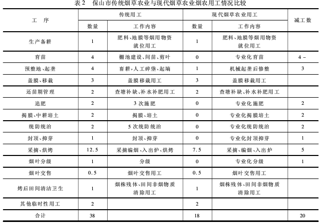 第五,形成国家对农民扶持的普惠机制。农民合作社的发展,可以在充分调动农民积极性,体现规模经济效益的同时,使国家的支农惠农政策通过合作社有序有效的传导到农民群众之中,切实实现中央的“普惠制、广受益”要求,克服“大户带动型”带来农民贫富悬殊差距加剧的危险,因此,政府主导的规范动员参与,发展农民专业合作社是实现共同富裕目标的具体实践。根据测算,在烤烟专业合作社的运行中,保山每种植一亩烤烟可节约20个工时(如表2所示),按照2008年烟区雇工平均每工时27元、全市种植28万亩、35万烟区群众计算,每亩节约成本540元,仅此一项,烟区群众人均增收432元。