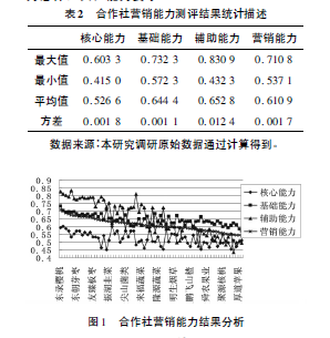 ( 2) 比较而言,目前合作社的营销能力中的基础能力还是比较高,并且合作社的基础能力之间的差距也不是很大,均值为0. 644 4,仅次于辅助能力,方差为0. 001 1,是这几个能力中最小的。