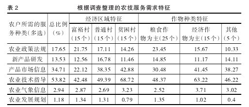 (1)整体需求强烈。调查发现,当前农民对农业科技服务的需求普遍比较强烈。不管是经济发达地区的农村,还是行对贫困的农村,也不论是以经济作为为主的地区,还是以粮食作物为主的地区,都表现出了对农业服务的强烈需求,特别是对农业技术指导、农产品市场信息等服务的需求,尤为突出。