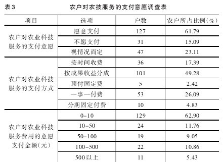 #p#副标题#e# 2 农户对农业科技服务的支付意愿分析