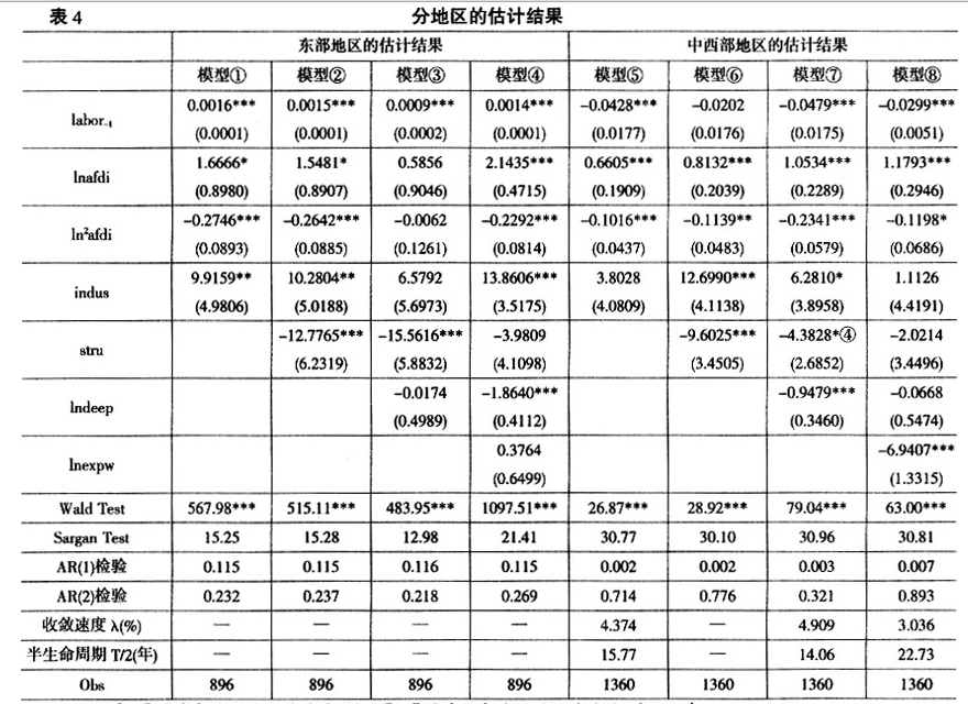 (三)FDI流入对农村剩余劳动力区域间转移的影响:“梯度差异”效应