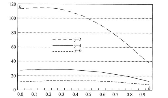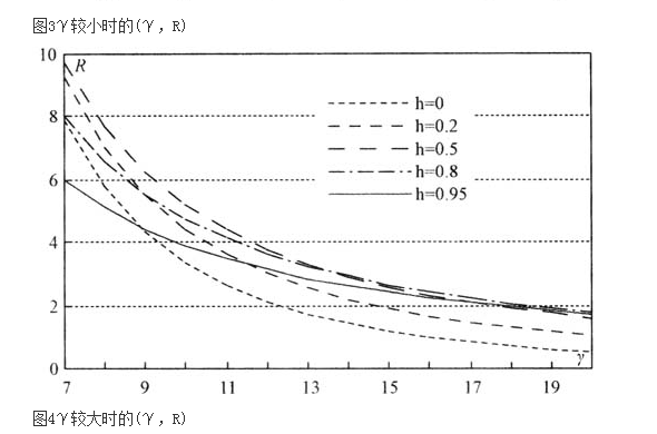 从图1、2还可以看出,当h一定时,随着γ的增大,R是递减的,图3、4是进一步的描述。