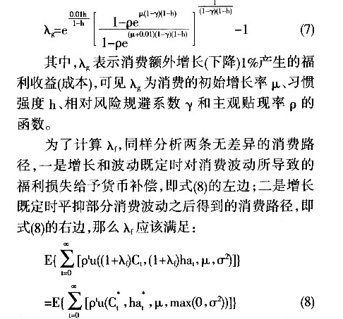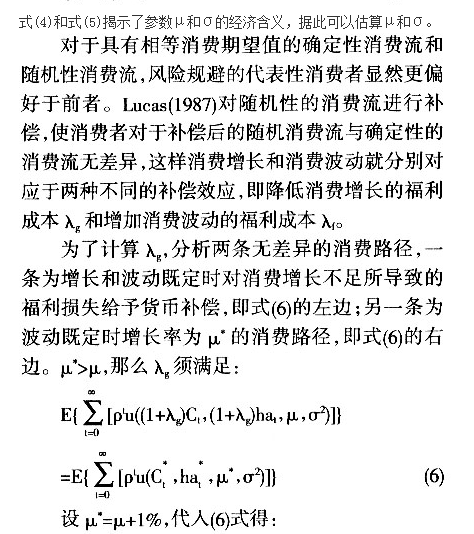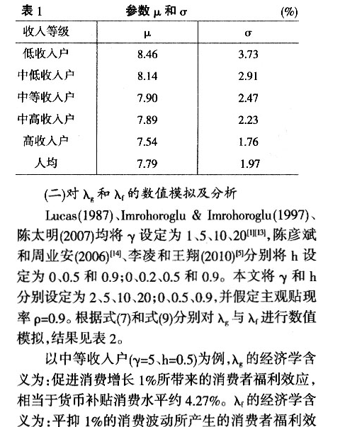 Lucas(1987,2003)等在分析消费路径的补偿时,把消费波动的福利成本视为与完全消除消费波动后得到的消费路径相比较,原有的消费路径应得到的货币补偿[1][8]。由于宏观经济政策的目标在于平抑消费波动,其几乎不可能彻底消除消费波动,可见这一思路过于极端。