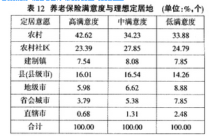 “新农保”政策是另一项与农民切身相关的社会保障措施。通过考察农民对“新农保”满意度与理想定居地的关系我们发现,对“新农保”政策满意度由高到低的农民选择定居农村的比率依次为42.62%、34.23%、33.88%,呈逐渐降低的趋势。也就是说,对“新农保”政策满意度越低,农民越不愿意定居农村。另外,对“新农保”政策满意度低的农民选择定居地级市(8.88%)、省会城市(7.85%)和直辖市(2.48%)的比率均比其他满意度水平的农民更高(见表12)。由此可见,对“新农保”政策满意度越低,农民定居城镇的意愿越强。产生这一现象的原因,主要在于目前的“新农保”政策还不能满足农民的养老服务需求,农民希望通过到城镇定居享受更好的养老保障。