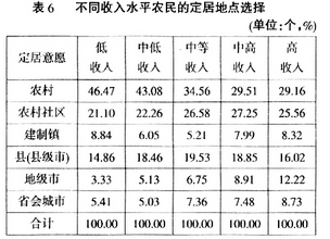 第二,在定居城镇的层级偏好上,县(县级市)成为农民进城定居的首选,且其比重远远高于建制乡(镇)、地级市、省会城市以及直辖市。由此可见,推进农民的城镇化,应重点以县域为中心展开,这更加符合农民的内在需求。