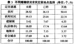 (二)农民定居意愿的婚姻差异