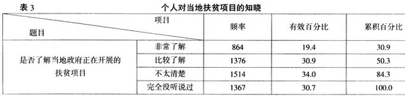 对当地政府正在开展的扶贫项目,被调查者知晓度如下表所示: