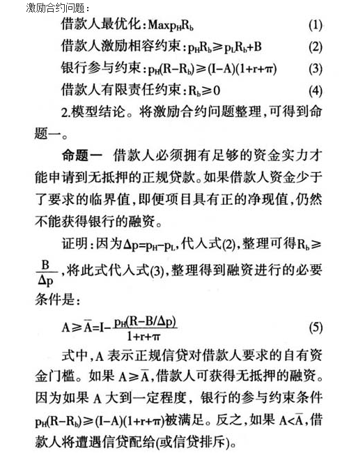 借鉴Holmstrom & Tirole(2007)、Conning和Udry(2005)的道德风险模型,分析在信息不对称下,当借款人(农业经营主体)存在道德风险时,激励合约设计所要求的最低自有资金要求。以此为参照,分析农地抵押缓解信贷配给的原因。