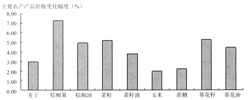 图3 美欧发展生物质能源授权导致的世界主要农产品价格变化