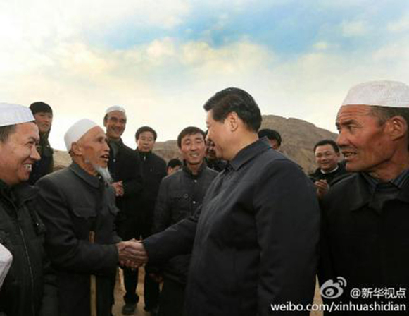 【现场】2013年2月3日。甘肃东乡族自治县是我国唯一东乡族聚居区。习近平沿着陡峭山路,来到山大沟深的高山乡布楞沟村,在马麦志家看水窖、问生活、察医保。习近平要求当地政府抓紧解决好村民饮水困难。他向聚集在村头乡亲们表示,党和政府会进一步帮助大家,让大家生活越来越好。