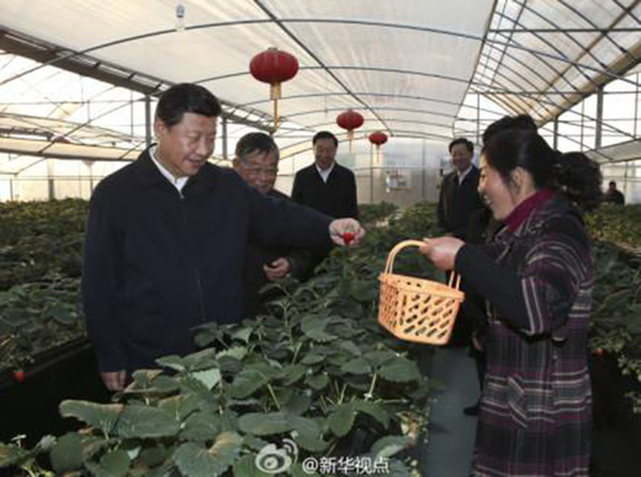 【现场】今年12月13日,江苏镇江世业镇四季春农业园里,高架草莓种植技术吸引了习总书记目光。在大棚里,习近平询问种草莓用不用培养钵、产量销路如何。他还回忆起上世纪80年代在河北正定工作时,曾专门到满城考察引进草莓新品种。他鼓励在场的农业科技专家赵亚夫把好技术推广起来,带动群众致富。