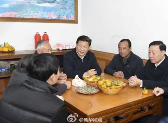 习近平在河北省阜平县看望慰问困难群众,考察扶贫工作。新华社记者 兰红光 摄