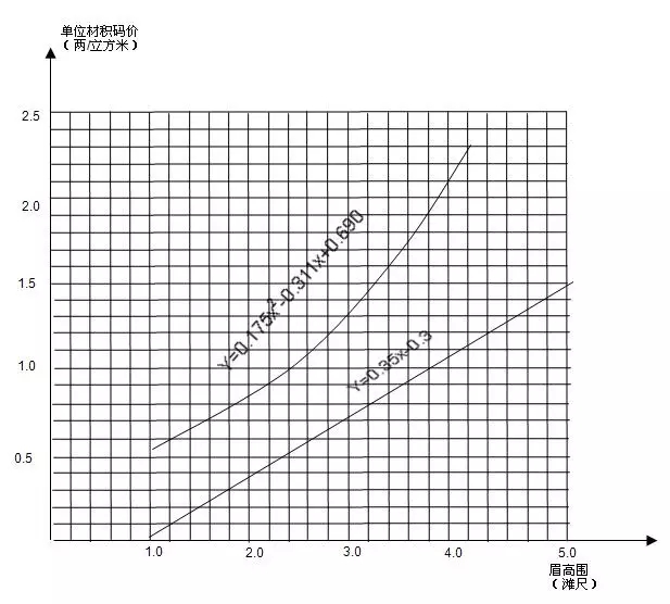 我在网格纸上画各种规格眉高围的杉原条的单位材积码两值的曲线时发现,如果把60根长短不一的丝线由短到长顺序且等距地垂直于横轴上,其顶点的连线就是回归方程表示的曲线。即龙泉码价表的创始人用坐标系的方法调整60丝线的长度,找到一条反映单位材积码两值与眉高围关系的平滑曲线。