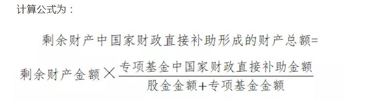 第四条 农民专业合作社解散、破产清算时,在清偿债务后如有剩余财产,清算组应当计算其中国家财政直接补助形成的财产总额。计算公式为:
